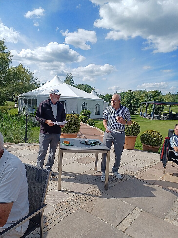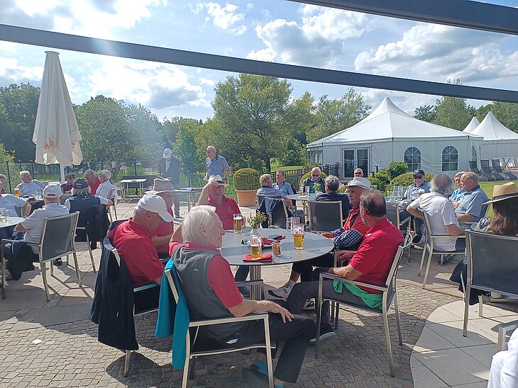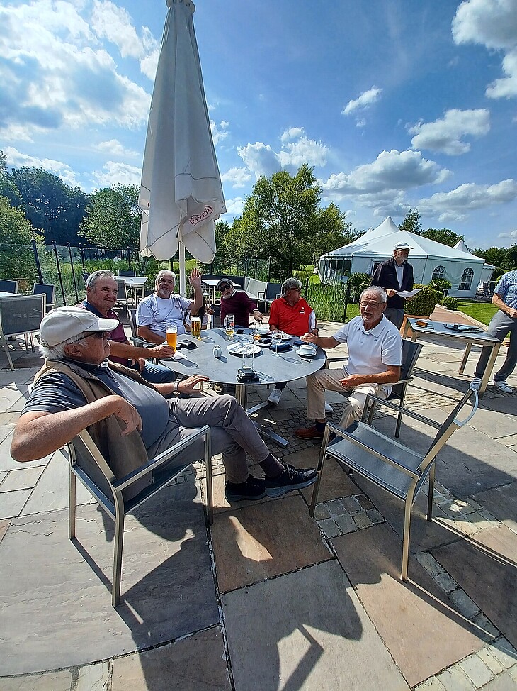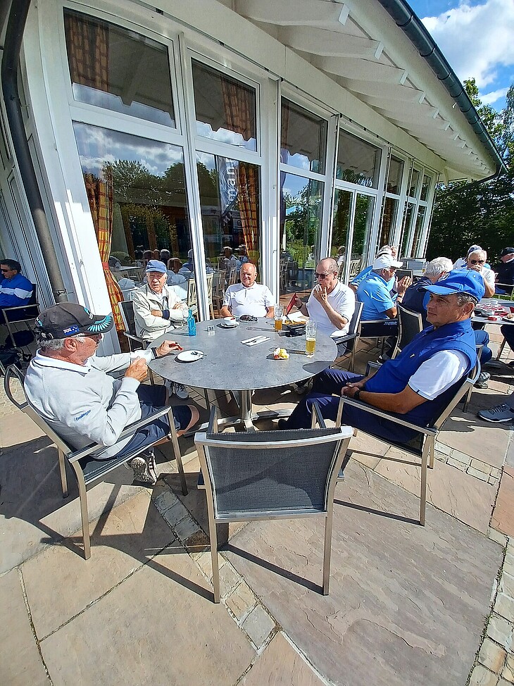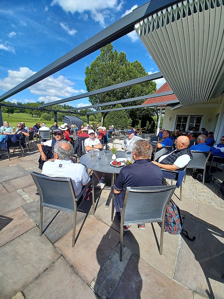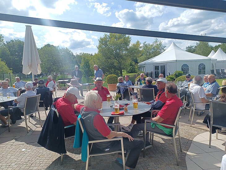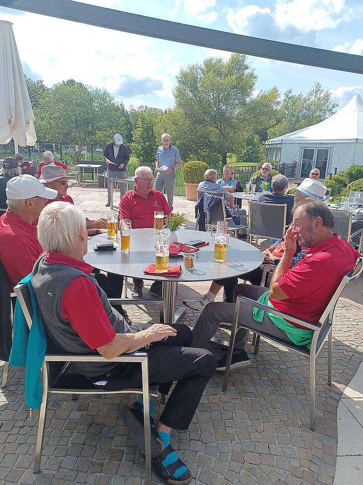 Davon profitierten die Spieler und trafen sich zum gemeinsamen Essen und der Siegerehrung auf der sonnigen Terrasse, welche Herr Frank Willenberger für die AK 65 3. Liga Gruppe D und Herr Albert Pschorr für die 3. Liga Gruppe A, durchgeführt hat.