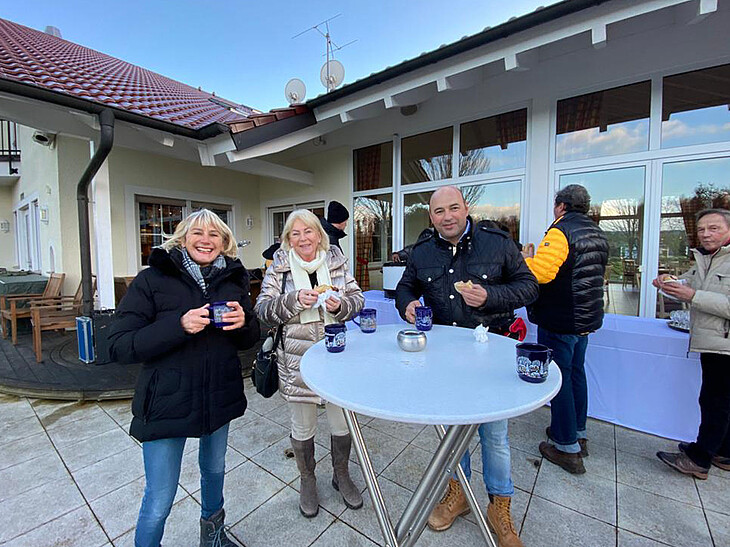 Den sportlichen Ausklang gab es auf der Terrasse, bei Roter Wurst und Glühwein konnte der gemeinsame Tag noch einmal belacht werden. Die gute Laune aller Anwesenden wurde musikalisch begleitet vom Musiker Italo Caligiuri. Das vergangene Jahr, mit allen Höhen und Tiefen konnte hier in kleiner Runde noch einmal besprochen werden.